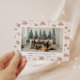 Holiday card featuring a cute pastel pink and green wallpaper background with one family photo paired with a holiday greeting and your name and year in a sans serif font.