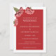 This custom wedding invitation features illustrations of pink carnations in a realistic style. The pink blooms are set against a rich red background with all of your event details in white lettering.