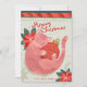 Pink Cat Christmas Illustration Flat Holiday Card