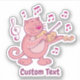 Handrawn pink cat cartoon playing the violin. Custom text.