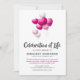 Illuminate the beauty of life with our modern personalized funeral memorial invitations. Embrace the peaceful interplay of white and pink hues that craft the image of heart-shaped helium balloons floating into the beyond. Our design blends elegance and solace, creating the perfect template to celebrate a cherished existence instead of mourning a loss. Remember your loved ones in a fitting and unique manner with our refined invitations.