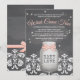 Celebrate a new mommy to be's Wish Come True with these pretty chalkboard style baby shower invitations with a printed pink ribbon bow look design on a glass mason jar with bright fireflies inside and the words Baby Love on the outside of it. Fireflies and stars glow around the border of this charming, antique damask lace design with a vintage and rustic feel. Perfect for the mom to be expecting a baby girl. Artwork © Chrissy H. Studios, LLC. All rights reserved.