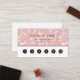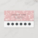 Bubbly chic loyalty cards feature a background pattern of bokeh lights in blush pink champagne tones, with your custom heading, loyalty offer terms, and six punchouts. Shown with "enjoy 20% off after five visits". Personalize the reverse side with your business contact information. For a metallic look, we recommend upgrading to the Pearl finish paper.