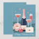 Pink Champagne Hearts Romantic Valentine's Day Holiday Card