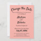 Spring poppy pink with black lettering on this personalized change the date card with your upcoming wedding information. Let the guests know that the wedding has been postponed, with this change the date flat invitation card. Add the new save the date. A triangle pattern is on the back. Unforeseen circumstances with a pandemic, or a personal issue of life, this is the ideal card to send to your guests. Modern, simple, and minimalist designed card. Customize it further to change the coloured background.