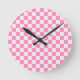Pink Check, Chequerboard Pattern, Chequered Round Clock