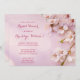 Pink cherry blossom bridal shower invitations (horizontal) with customizable text printed on pink background