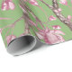 Pink Cherry Blossom Floral Printed Green Wrapping Paper