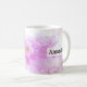 A mug with a beautiful photograph featuring pink cherry blossoms. Dreamy image with bokeh lights and sparkles.
