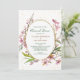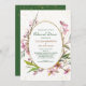 A double oval gold frame is decorated with pretty watercolor image cherry blossom twigs on this wedding rehearsal dinner invitation. Your custom text is in matching green and gold in the centre. The background has a sparkling gold confetti spray. The images and text are placed on an elegant white background. The back of the invitation is matching green, with the same confetti overlay. Beautiful, modern, and chic! Be sure to see the matching wedding products in our store.