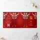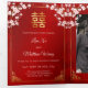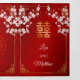 This traditional bilingual Chinese wedding invitation features pretty pink cherry blossoms, a Chinese gold frame and a gold double happiness symbol on a ruby red shimmering background. Bride and groom names in an elegant classic script. Chinese wedding invitation or tea ceremony invitation. With your photo in the center of the tri-fold wedding invitation and a traditional Chinese text at the right inner side. At the backside are the details and a scannable qr code for your wedding website.