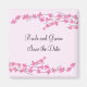 Elegant pink cherry blossom branches with a background of soft pink to accent the bride and groom's names and wedding date. Customize as desired.