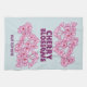 This design has two branches of pink cherry blossoms. A spring time themed design for anyone who loves cherry trees, or maybe for a blossom festival. A vector illustration with the word cherry blossom in the middle.
