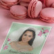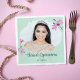 These paper party napkins are ready to be customized with your photo and your own text. Your picture is set inside an elegantly shaped frame that's accented by pink cherry blossom flowers and set against a mint green background.