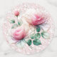 Soft chiffon pink roses on a white lace-like background.