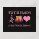Stylish Pink CHRISTMAS BLESSINGS postcard for men and women of all ages. The design shows a heart, Christmas pudding and modern Christmas tree graphic in popular trending pink colour. At the top the wording reads 'TIS THE SEASON and underneath reads CHRISTMAS BLESSINGS. On the reverse there is a Christmas greeting. All text is CUSTOMIZABLE so you can personalize this pink Christmas postcard by adding your name and special greeting. Matching gifts available.