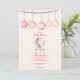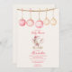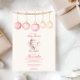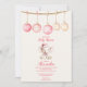 This festive baby shower design features a hand-painted baby elephant in a Santa hat, surrounded by blush pink and gold ornaments dangling from rustic twine. Soft watercolor textures and sweet holiday tones create a cozy, whimsical atmosphere — perfect for celebrating a winter baby girl with warmth and charm.