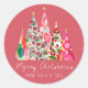 Pink Christmas Modern Elegant Trees Classic Round Sticker