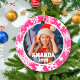 Pink Christmas Snowflakes Personalized Kids Photo Ceramic Ornament