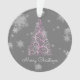 Decorate your tree this holiday season with a Pink Christmas Tree and Snowflakes Ornament. Ornament design features a vibrant artistic Christmas tree with falling snowflakes and a dark grey background. Additional gift and holiday items available with this design as well.