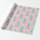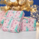 Pink Christmas Tree Pattern Teal Holiday Wrapping Paper