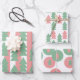 Pink Christmas Tree Stripes and Dots Ornaments Wrapping Paper Sheet