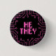Pink Circuit Board He/They Pronouns 1 Inch Round Button