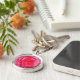 The original photograph by MaeFlowers on this Keychain is a closeup of a bright pink climbing rose, fresh from the garden. The rose petals, in light and shadow, are many shades of pink, from pale to deep. The rose faces us directly, showing the tips of the petals as they curve around to the centre.