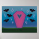 To me this art piece symbolizes new beginnings in endings. The upright coffin acting as almost a door with bats and sparkles and blue skies on the horizon. It’s uncomfortable not knowing what lies ahead but it’s worth it in the end my friend. No AI or robots here just real people making real art.