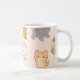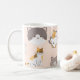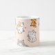 This delightful wraparound mug features a charming pattern of hand-drawn cats in a rainbow of playful colours, all set against a soft pink background.