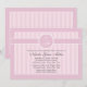 A beautiful pink and white, striped invitation with a round decal featuring a cross and the child's initials. (FP)