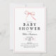 This cute posh pink baby shoer invitation features an oversized watercolor pink coquette bow with a matching cream border.
