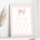 Explore sophistication with our elegant preppy 'Coquette' themed baby girl shower seating chart sign poster, adorned with a charming baby pink bow ribbon set against a backdrop of classic gingham pattern. Perfect for welcoming guests to your celebration with style and refinement.