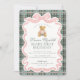 Pink Coquette Bow Bear Beary First Birthday Invitation