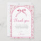 Romantic pink coquette bow 1st birthday Thank You Card.
