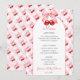 Complete your celebration with this Pink Coquette Bow Cherry Baby Shower Menu, designed for a sweet and feminine girl baby shower. Featuring a delicate pink bow and cherry illustration on a soft gingham background, this menu card beautifully complements a Cherry Baby Shower theme.