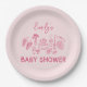 A Pink Coquette Modern Hand Drawn Baby Shower party decor paper plate design typically blends whimsical, playful elements with a contemporary aesthetic. The size is a standard and popular choice, however other formats are available.
