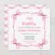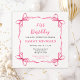 This cute and whimsical birthday party invitation features a cute pink ribbon frame. The text combines handwritten script and sans serif fonts for a stylish and modern look.