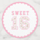 This sweet 16 confetti features the number 16 in a pink cottage rose pattern with Sweet in a pink varsity font. There is a scalloped border around the edge.