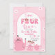 Pink Coquette Whimsical Retro Tea 4th Birthday Invitation