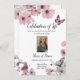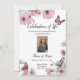 Pink Cosmos Wild Flower Butterfly Funeral Announcement Invitation