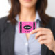 Hot pink crayon elementary school teacher hall pass badge for students. Personalize it by adding your name, classroom number and school name.