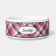 Lovely plaid pattern in pink, cream and dark grey colour scheme. There is also an oval shape banner that has a personalizable text area for the name of the pet. The font is a nice script font in dark grey colour.