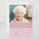 Custom photo 85th Birthday party invitations in elegant rose pink and off white floral and stripes pattern. Add your name, photo, and party details for a unique and stylish birthday party invitation.