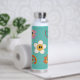pink cream illustration retro flower water bottle. bottle