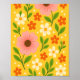 Pink, cream & Orange Flowers with Green Leaves Poster