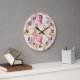 Pink Cream White Straw Hats Large Clock