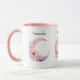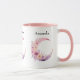 A mug with a lovely illustration featuring a soft pink and purple crescent moon. Pretty pink and yellow wildflowers adorn this celestial body.