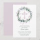 Pink Cross Sage Leaf Wreath First Communion Invitation