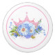 Pretty ceramic drawer pull knob, with graphics of a pink crown and blue flowers, with a thin pink frame around the outside edge. Customize to add any text you want. Perfect for the little princess room.